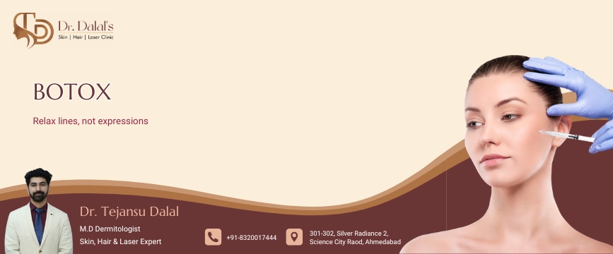 With Botox treatments performed by Dr. Tejansu Dalal, anti-aging care is focused on subtle enhancement and natural results. Dr. Dalal combines medical expertise with an artistic approach to soften fine lines, prevent early aging, and maintain facial harmony—without compromising natural expressions. Each treatment is personalized to ensure safety, comfort, and visible yet refined results. If you are looking for a trusted, non-surgical solution to look refreshed and youthful, Dr. Tejansu Dalal and his team are here to guide you with care and confidence.